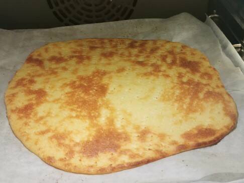 Leg de koolhydraatarme pizzabodem op een vel bakpapier.